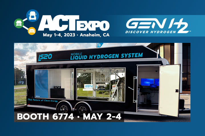 Titusville FL, April 26, 2023 — GenH2, a leader in hydrogen infrastructure solutions, announced today that the company will be exhibiting its ground-breaking LS20 Mobile Liquid Hydrogen System, an end-to-end liquefication and storage system, at the Advanced Clean Transportation (ACT) Expo (Booth #6774) May 2-4, 2023 at the Anaheim Convention Center in California. GenH2 is a Silver Sponsor of the event, where original equipment manufacturers (OEMs) and commercial transportation technology providers showcase the latest products and solutions designed to decarbonize transport and pave the way to a cleaner future. GenH2’s President and CEO, Greg Gosnell, will also be speaking on a hydrogen workshop panel on May 1.